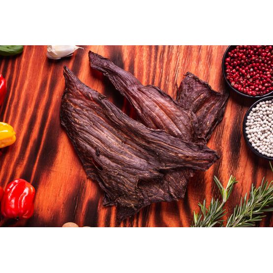 Každých 12 g sušeného masa tak odpovídá 50-55 g surového steaku. Produkt obsahuje pouze přírodní koření. Žádné barviva, látky zvyšující chuť, stabilizátory a další chemikálie.